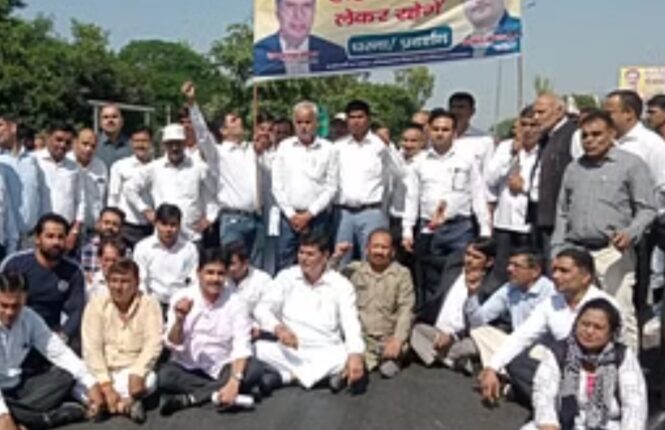 हाईकोर्ट बैंच स्थापना संघर्ष समिति के आह्वान पर जिला बार एसोसिएशन के अध्यक्ष रामकुमार तोमर और महामंत्री कपिल कुमार के नेतृत्व में कचहरी परिसर से जुलूस निकालकर नारेबाजी करते हुए कलक्ट्रेट के सामने दिल्ली सहारनपुर हाइवे पर पहुंचे और जाम लगाकर बैठ गए।