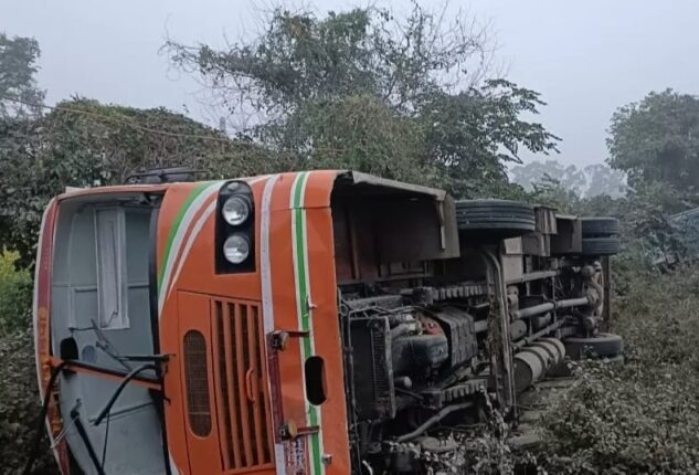 कानपुर। बिधनू कठेरुआ गांव के पास शुक्रवार सुबह ओवरटेक कर रही रोडवेज बस के आगे चल रहे डंपर से टकराने के बाद खंती में पलट गई। जिसमें बस के दो चालक समेत नौ सवारियां दबकर घायल ही गई। वहीं अनियंत्रित डंपर खंती में जा घुस गया। जिसका चालक मौके से भाग निकला।
