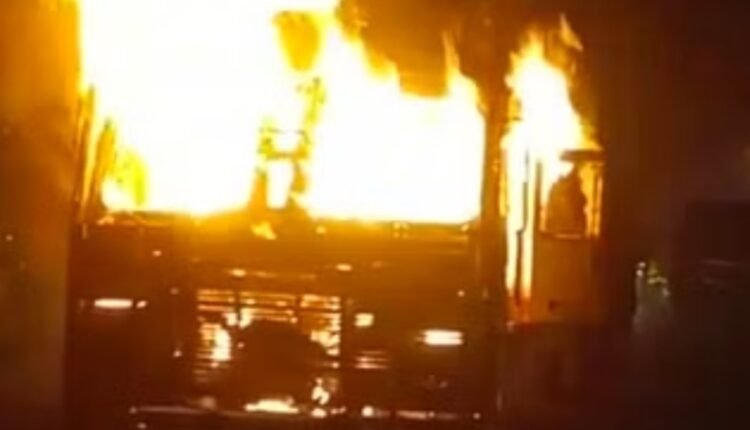 लकड़ी से भरा ट्रक हाईवे पर बना आग का गोला, चालक और क्लीनर ने कूदकर बचाई जान