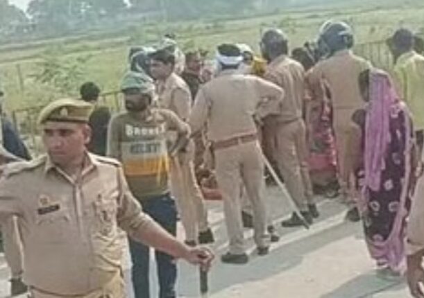 सड़क जाम हटाने पहुंची पुलिस पर ग्रामीणों ने किया पथराव, पांच पुलिसकर्मी घायल, वाहन का शीशा तोड़ा