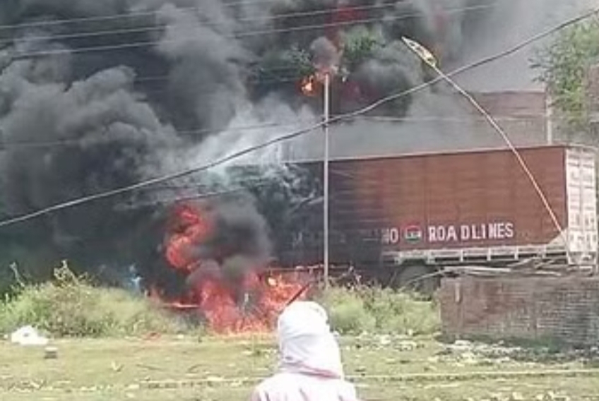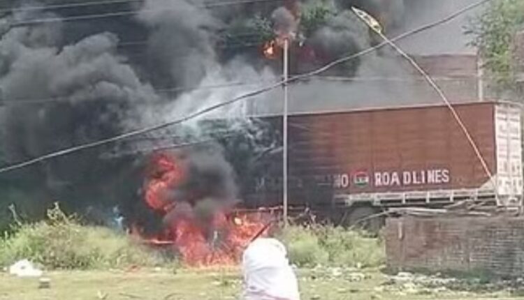 हाईटेंशन तार के कारण चलते कंटेनर में लगी आग, बुलेट सवार युवक और किशोर जिंदा जले