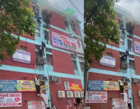 दिल्ली के मुखर्जी नगर के कोचिंग सेंटर में आग, कई मंजिला इमारत से रस्सी के सहारे नीचे उतरे छात्र