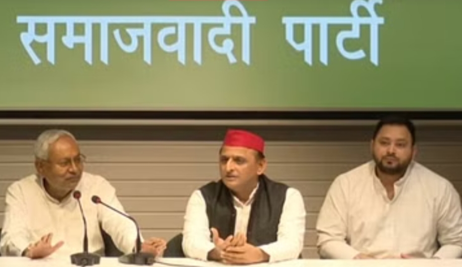 बिहार के मुख्यमंत्री नीतीश कुमार व उप मुख्यमंत्री तेजस्वी यादव सोमवार को सपा के राष्ट्रीय अध्यक्ष व यूपी के पूर्व मुख्यमंत्री अखिलेश यादव से मिलने के लिए लखनऊ पहुंचे। तीनों नेताओं ने मुलाकात के बाद मीडिया को संबोधित किया