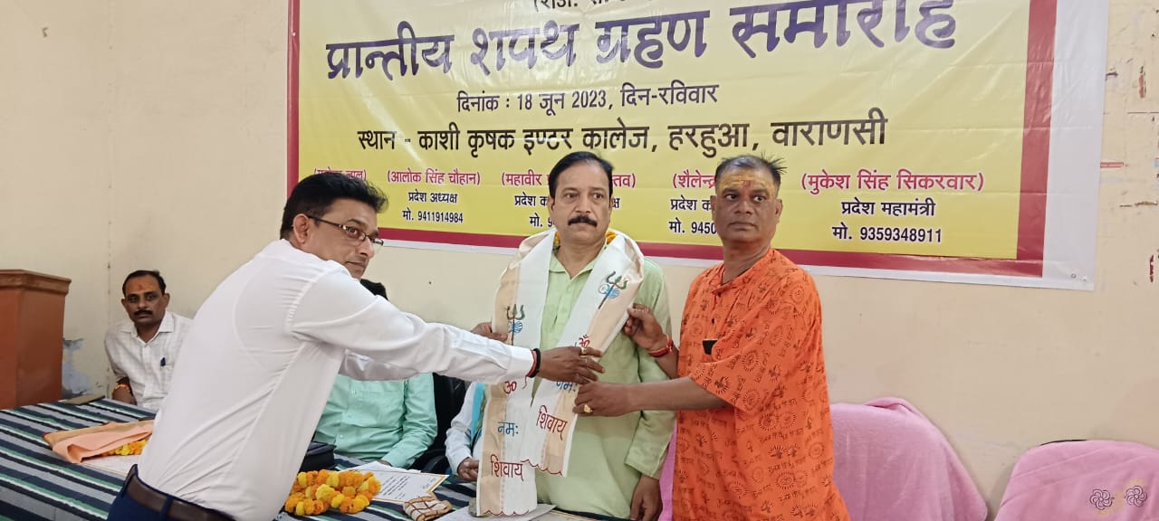 वाराणसी, 18 जून 2023, उ0प्र0 माध्यमिक शिक्षणेत्तर संघ का प्रान्तीय शपथ ग्रहण समारोह एवं ग्रीष्मकालीन संगोष्ठी कार्यक्रम काशी कृषक इन्टर कालेज हरहुआ, वाराणसी पर दिन में 11 बजे से प्रारम्भ हुआ, जिसमें प्रदेश भर से चयनित शिक्षणेत्तर कर्मचारियों ने संगठन हित में अपने पद एवं गोपनीयता के साथ शपथ ग्रहण किया। शपथ ग्रहण समारोह में कुल बास पदाधिकारियों द्वारा शपथ ग्रहण किया गया। जिसमें प्रमुख रूप से प्रदेश अध्यक्ष आलोक सिंह चौहान – बरेली, कार्यकारी प्रदेश अध्यक्ष महावीर प्रसाद श्रीवास्तव, वाराणसी, प्रदेश महामंत्री- मुकेश सिंह सिकरवार-आगरा प्रदेश कोषाध्यक्ष शैलेन्द गिरी, प्रदेश उपाध्यक्ष अवधेश बहादुर सिंह, प्रदेश उपाध्यक्ष शैलेष चौहान, प्रदेश मंत्री सन्तोष सिंह, प्रदेश मंत्री उमेश चन्द्र गुप्ता, प्रदेश संयुक्त मंत्री – वहीद अहमद, रवीन्द्र कुमार त्रिपाठी, प्रदेश संगठन मंत्री – शेषनाथ पाल, रमेश कुमार पाल, बृम्ह कुमार, प्रचार मंत्री रजनीश, आय-व्यय निरीक्षक-वेद प्रकाश शुक्ला, मुख्य संरक्षक-मनोहर लाल सहित समस्त चयनित पदाधिकारीगण उपस्थित रहे। कार्यक्रम में स्वागताध्यक्ष विद्यालय प्राधानाचार्य डॉ नगीना सिंह रहे।