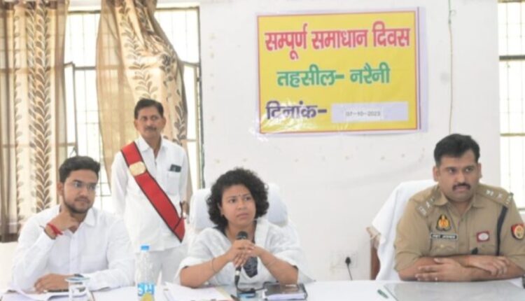 नरैनी/बांदा। जिलाधिकारी दुर्गा शक्ति नागपाल की अध्यक्षता में तहसील नरैनी में सम्पूर्ण समाधान दिवस का आयोजन किया गया।